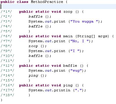 so on. When there is a jump to another method, indent your code so that you can tell that you have jumped to